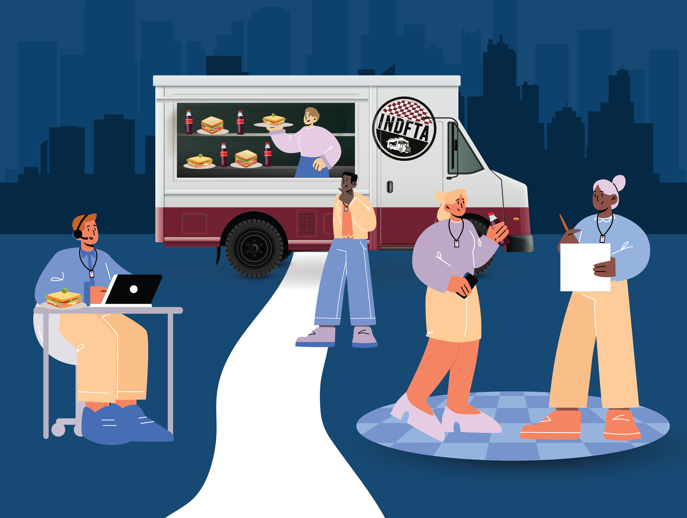 Booking a food cart with INDFTA is easy! Simply select your service, tell us a little bit about your event or branded promotion, and select your food cart. One of our members will reach out to you ASAP to finalize the details.